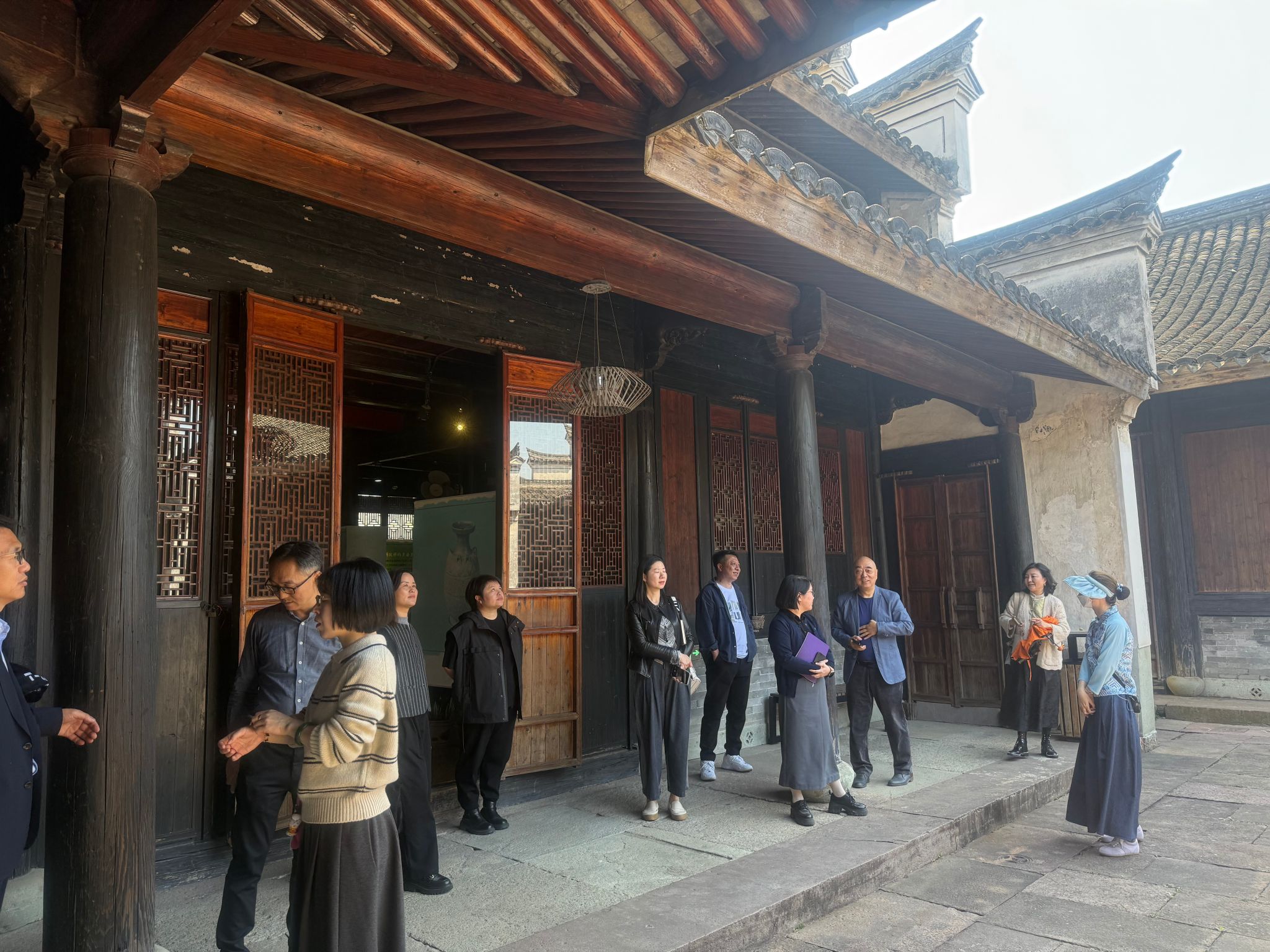 与潘天寿建筑与艺术设计学院一行赴宁波市慈城古县城旅游发展有限公司开展专题调研。双方就音乐会演出、写生创作、文化IP开发等合作方向进行深入交流,共同探索传统文化资源的当代艺术表达。