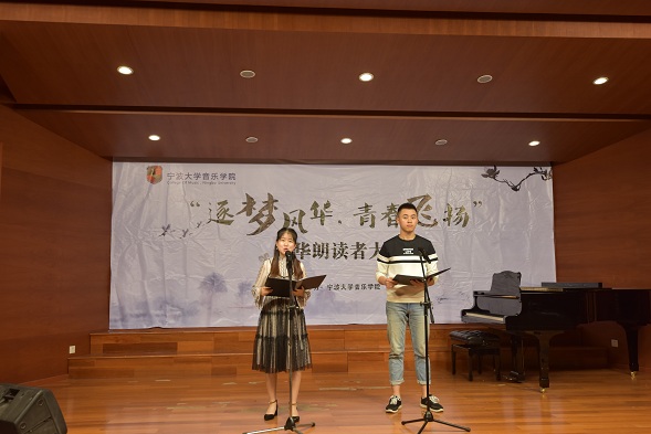 映着耀眼的灯光,朗读比赛在激扬的小音乐厅中拉开了序幕。10位通过初赛晋级的同学将在这里迎接挑战。选手们有的成熟稳重,有的激情昂扬,每个人都通过这次比赛展现了自己高超的口语表达能力和各具特色的人格魅力。一段段文辞优美的叙述,无不引起观众的强烈共鸣,比赛掌声不断。