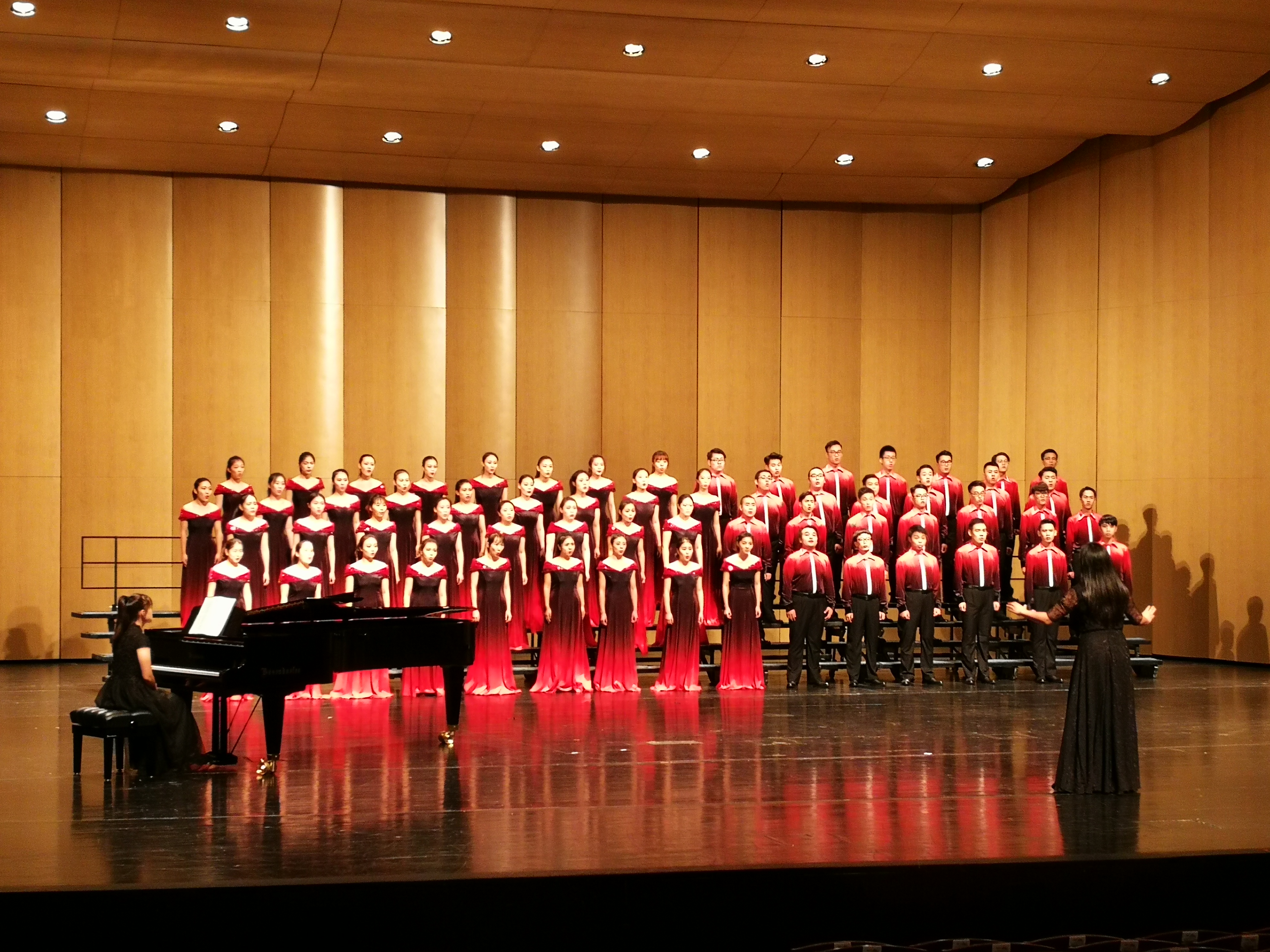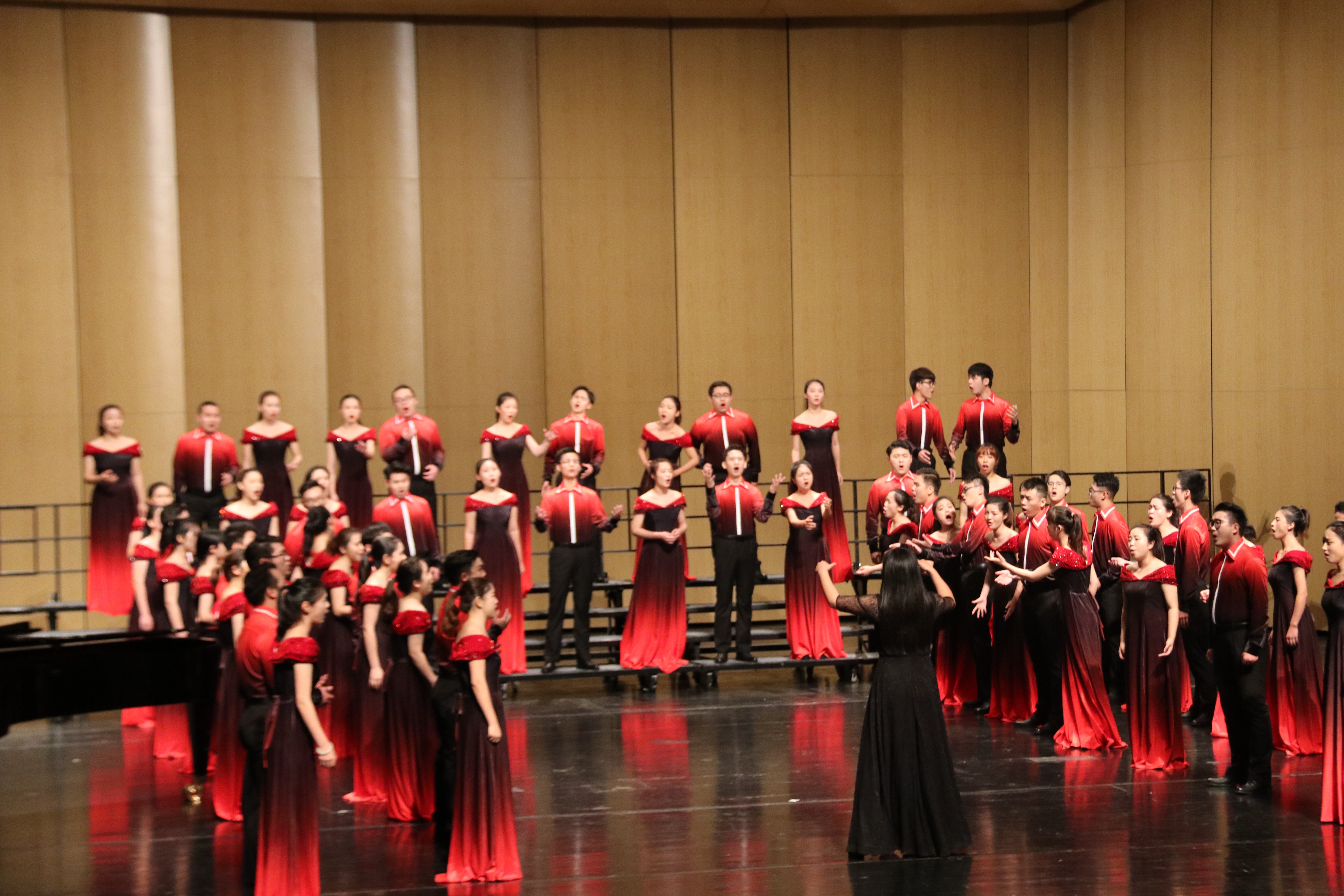 合唱团共演出了两首曲目,一是根据唐代诗人王维的七言绝句《送元二使安西》谱写的一首著名的艺术歌曲《阳关曲》;二是美国作曲家Stroop的一首《耶利米哀歌》。两个作品或委婉悠扬或高亢热烈,获得了评委和在场观众的的一致好评。