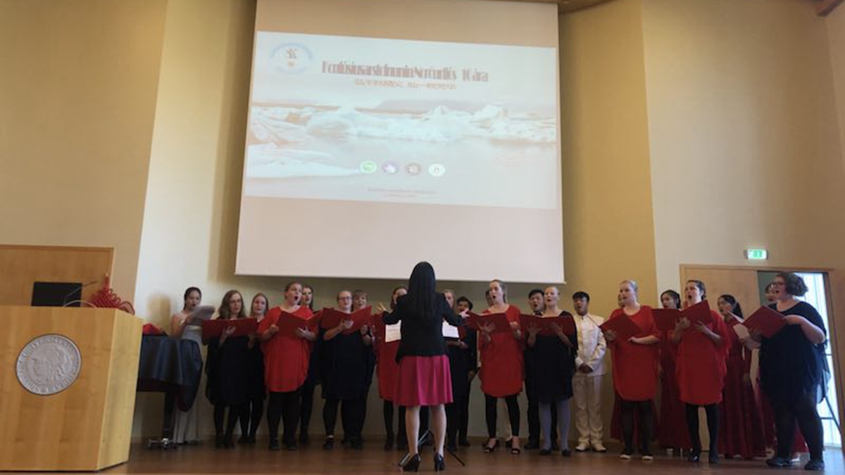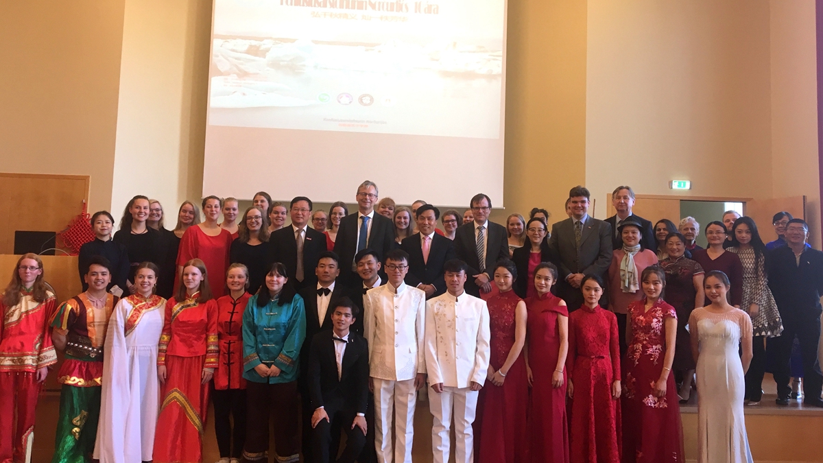 学生表演了《迎宾曲》、《乌苏里船歌》、《送你一支玫瑰花》等充满中国传统文化特色的精彩歌舞,并与冰岛大学北极光孔子学院合唱了《踏雪寻梅》、《长江之歌》。孔子学院学生表演了武术、快板,活动现场气氛欢快热烈,观众掌声不断。快板、中文合唱都是冰岛北极光孔子学院多年教学成果的展示。