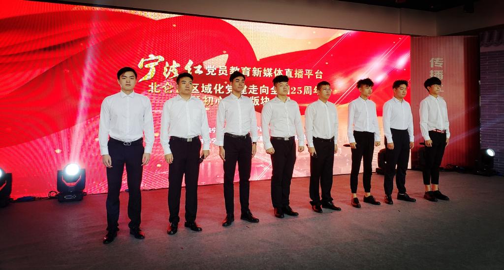 音乐剧《初心晨启·宣言》的八位演员代表剧组赴北仑参加“宁波红”党员教育新媒体直播活动,并演唱了剧中的主题歌《追寻》。