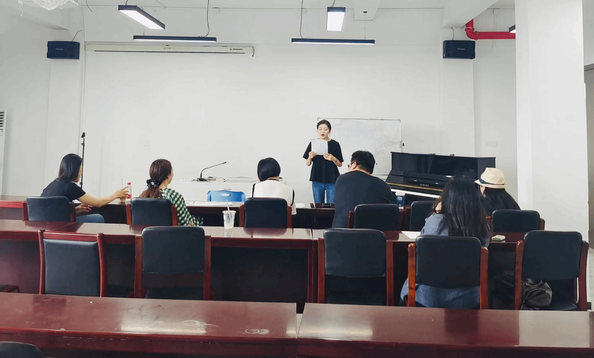 本次竞赛分为两轮选拔,第一轮在6月8日,19级89名同学分为六个赛场,各赛场两位评委根据学生的表现,参照评分标准中规定的项目酌情打分,比赛结束后选出排名靠前的15名同学,在6月14日下午1点再次进行第二轮选拔,最终评选出5名优秀师范生参加校级比赛。