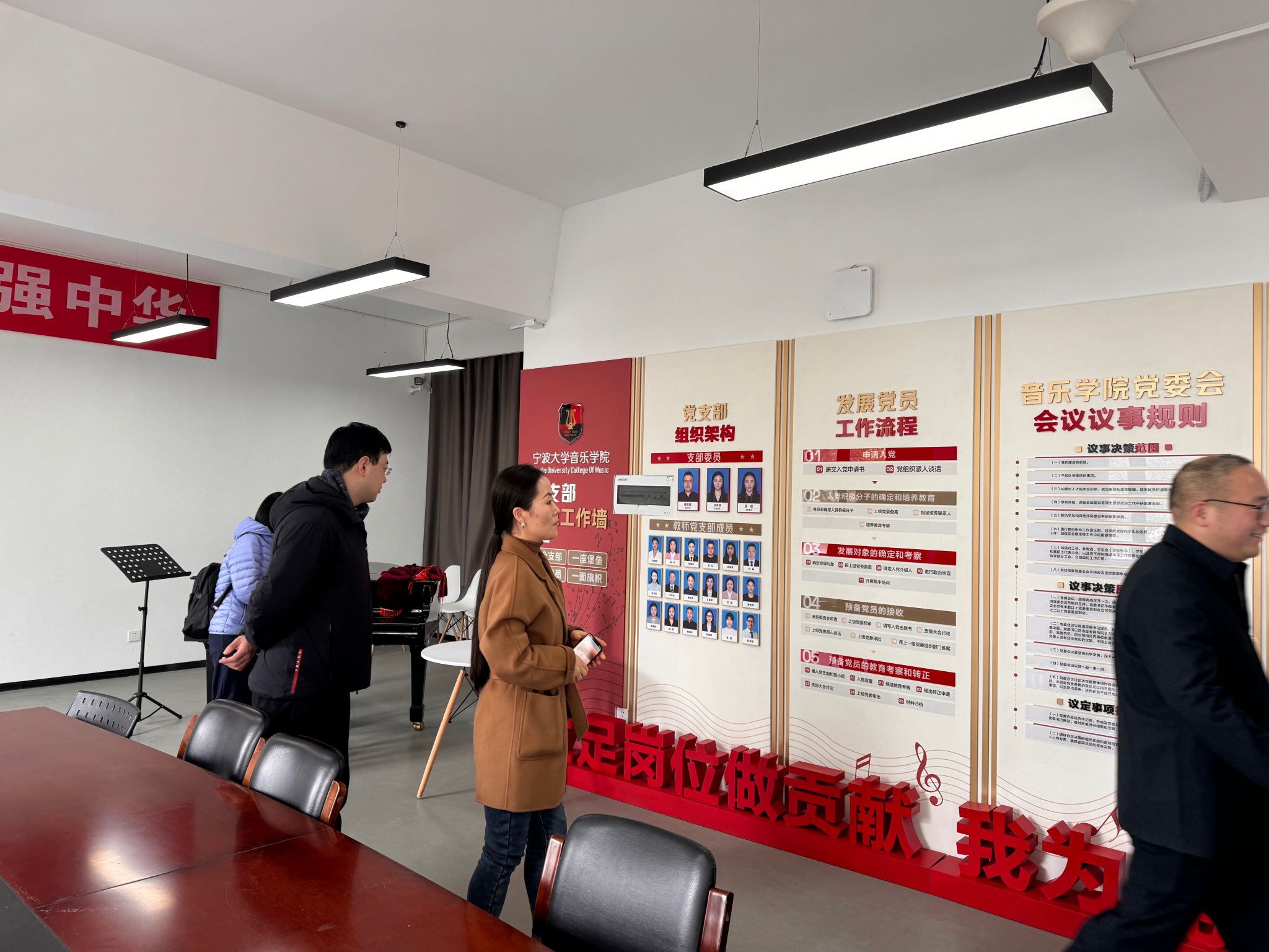 3月1日,湖州师范学院喜漫漫画 一行人来喜漫漫画 调研教学、科研等方面做法,并在特聘院长俞子正的带领下,参观了学院普雷耶音乐厅、教师琴房、玻璃琴房、党建阵地等。