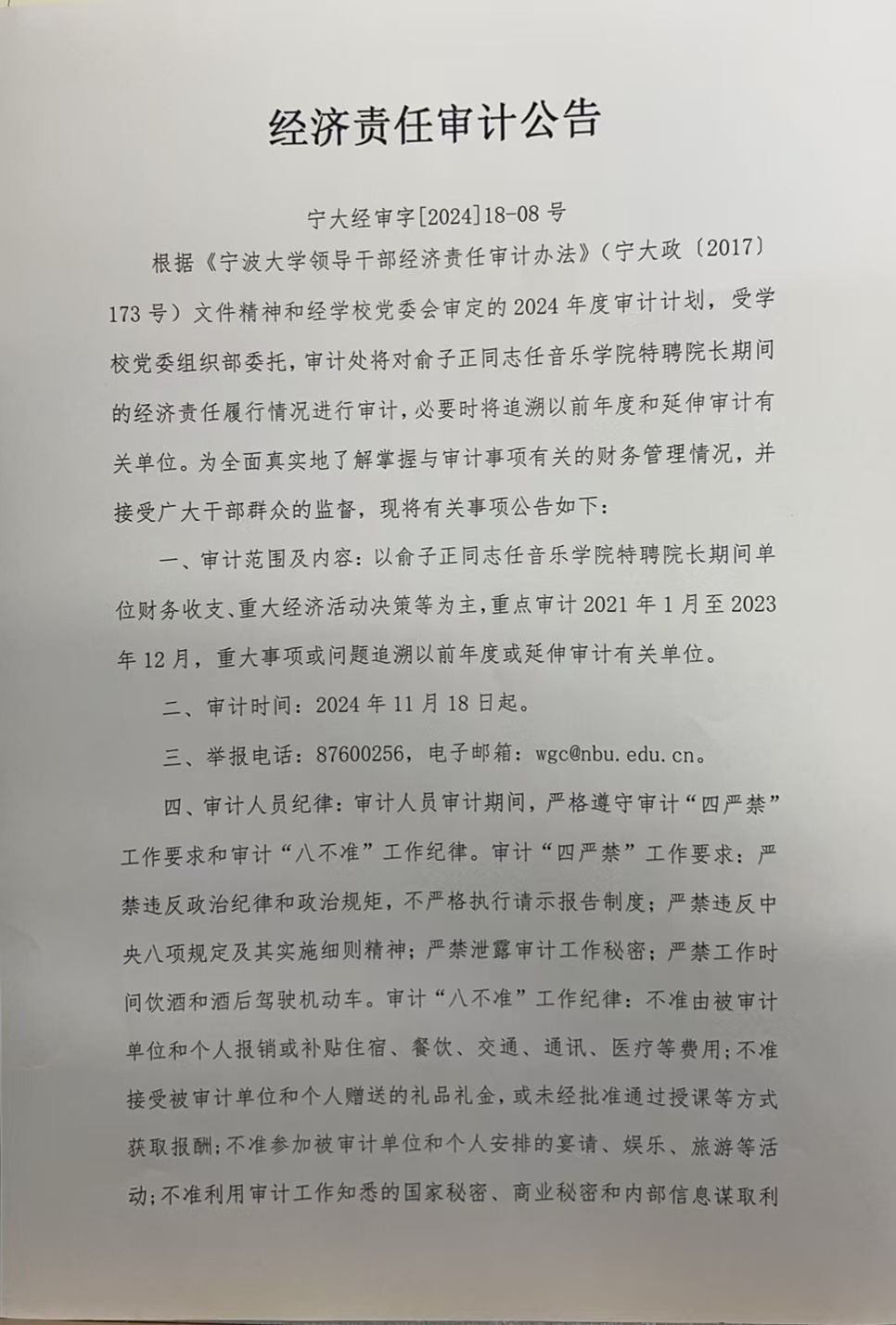 经济责任审计公告