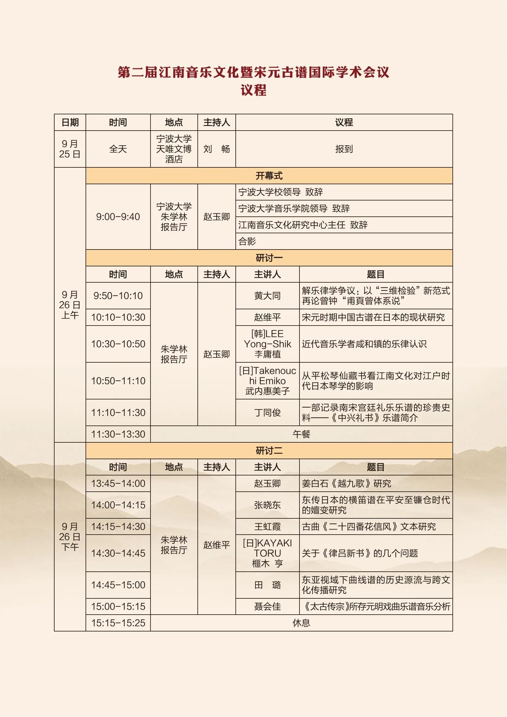 “第二届江南音乐文化暨宋元古谱国际学术会议”拟于2025年9月25-27日在喜漫漫画 举行。本届会议将围绕江南音乐文化、宋元古谱等学术研究新成果进行交流和研讨。
