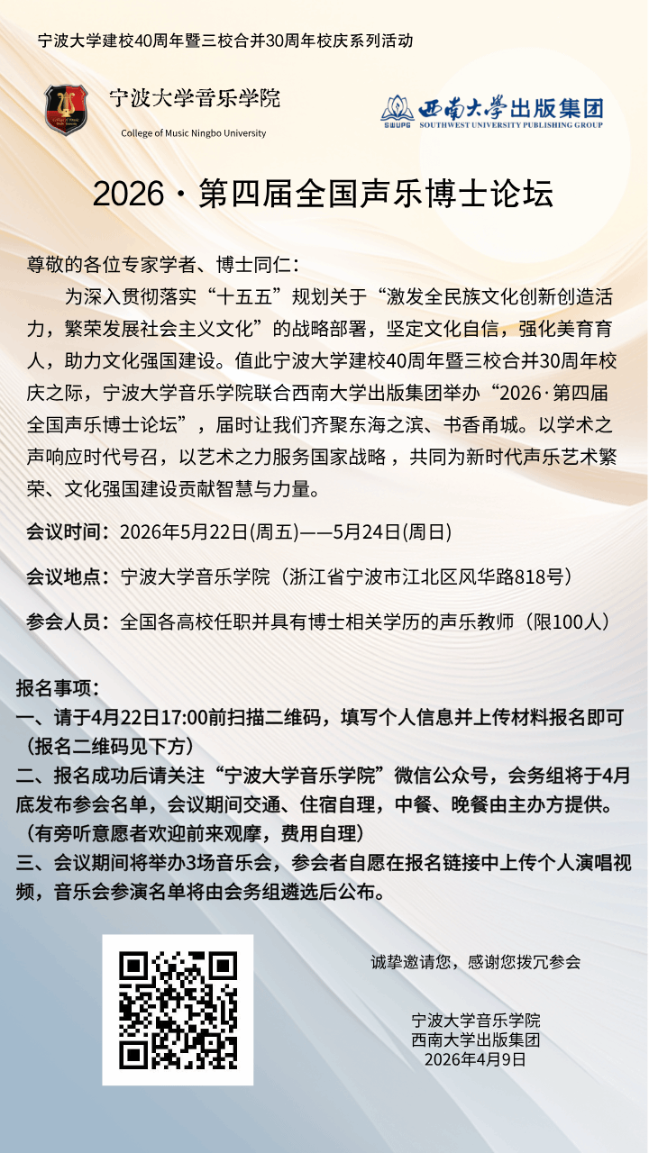 预告 | 2026·第四届全国声乐博士论坛