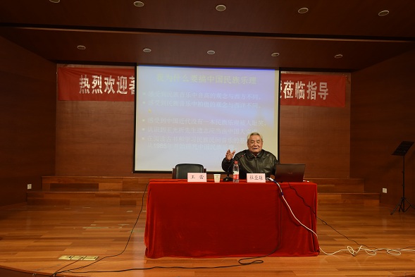 讲座的开始,杜亚雄教授就以其自幼的经历,讲述了之所以研究中国乐理的缘起:他认为中国音乐中不仅音高的观念与西方不同,连拍值的观念也与西方不同;在从事传统音乐研究的过程中,不断地感受到中国近代因没有一本民族乐理而被人耻笑……作为中国人的使命感,使得其坚信王光祈先生的遗志应当由中国人完成。于是在阅读古书和学习民族民间音乐基础上,从1985年开始研究中国乐理。目前,推广中国乐理的国家遍及全世界。杜亚雄教授结合具体的实例,阐释了中国乐理中声、音、律,板、眼,均、宫、调这十个对学生而言颇为生涩的概念。