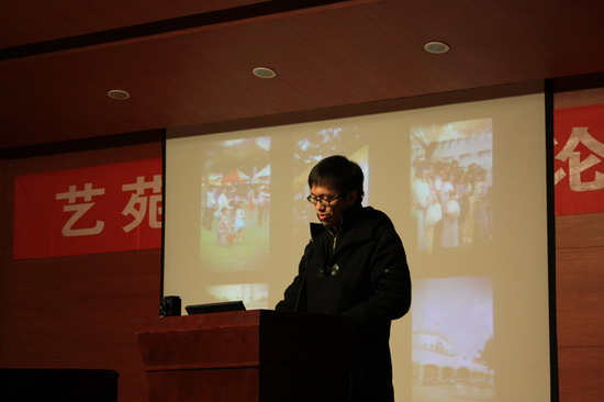 汪骎同学将在台湾的经历分成了三个部分,结合PPT分别从专业课程学习、参加2011台北国际设计大会的所见所得和台湾交流生活感触等方面逐一给同学们进行了绘声绘色的汇报。报告还展示了台湾当地的一些优秀设计作品,开拓了同学们的视野。汪骎同学表示,从台湾交流学习回来,最大的收获就是树立了自己的设计理念,同时他也将这一理念分享给了在场的所有同学,希望同学们在设计中可以摆脱电脑的束缚,多动手,设计出一些表现力更加丰富的作品来。