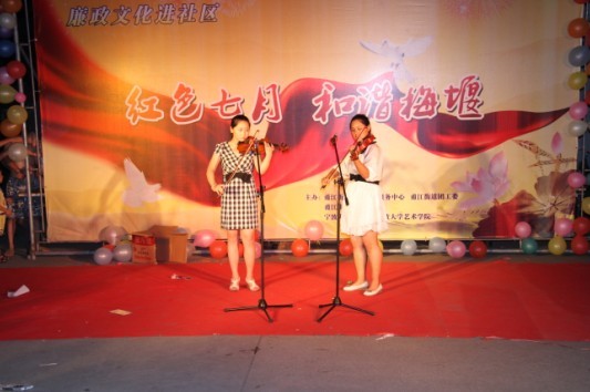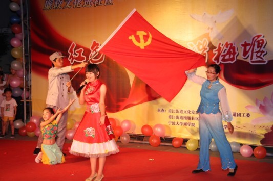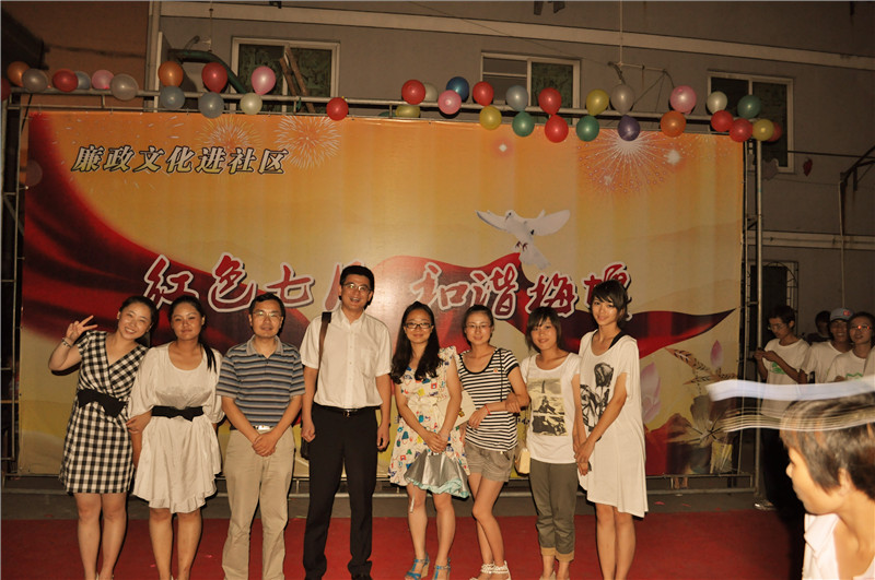 7月18日晚7点,江北区甬江街道梅堰社区的新文化广场上,人头攒动,琴声悠扬,一场精彩的以“红色七月,和谐梅堰”为主题的纳凉晚会正在这里举行,吸引了众多居民驻足观看,为这炎炎夏日吹起一阵和谐、文明、温馨的清风。校团委书记周青、商学院党委书记熊德平、喜漫漫画