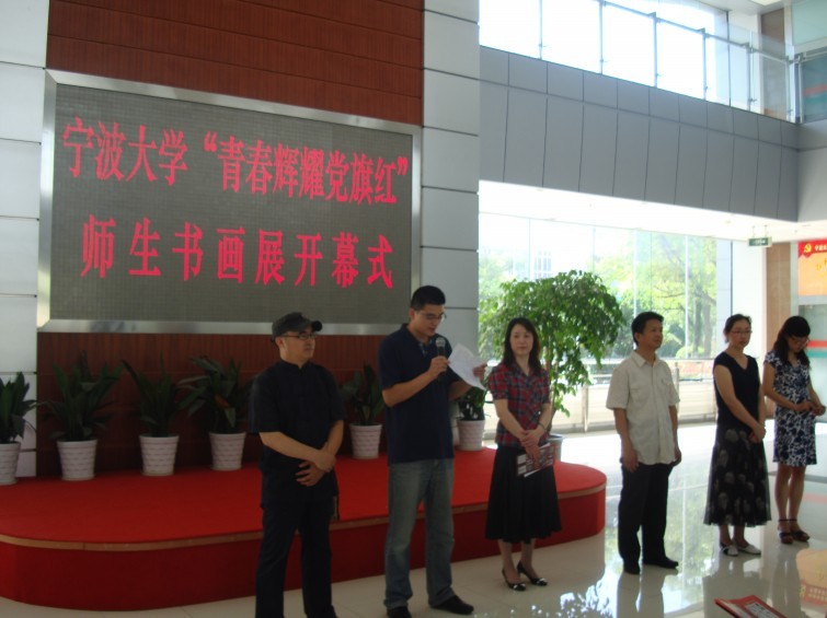 “青春辉耀党旗红”师生书画作品展在安中大楼一楼展厅隆重开幕。校工会常务副主席余雪华、校团委书记周青、校人事处/离退休工作处副处长刘缨和学院党政领导出席开幕式并为获奖学生颁奖。