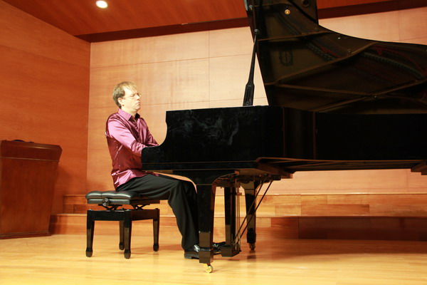 音乐会上,戴维·布雷德的钢琴演奏出神入化,给宁大师生带来了一场难得的听觉盛宴。他演奏的爵士乐无不让听众折服,特别是在演奏《春江花月夜》时,他把筷子插进三角钢琴的琴弦间,弹奏出击竹般清脆短促的乐音,奇特的创意和前所未见的音响效果让现场观众啧啧惊叹。