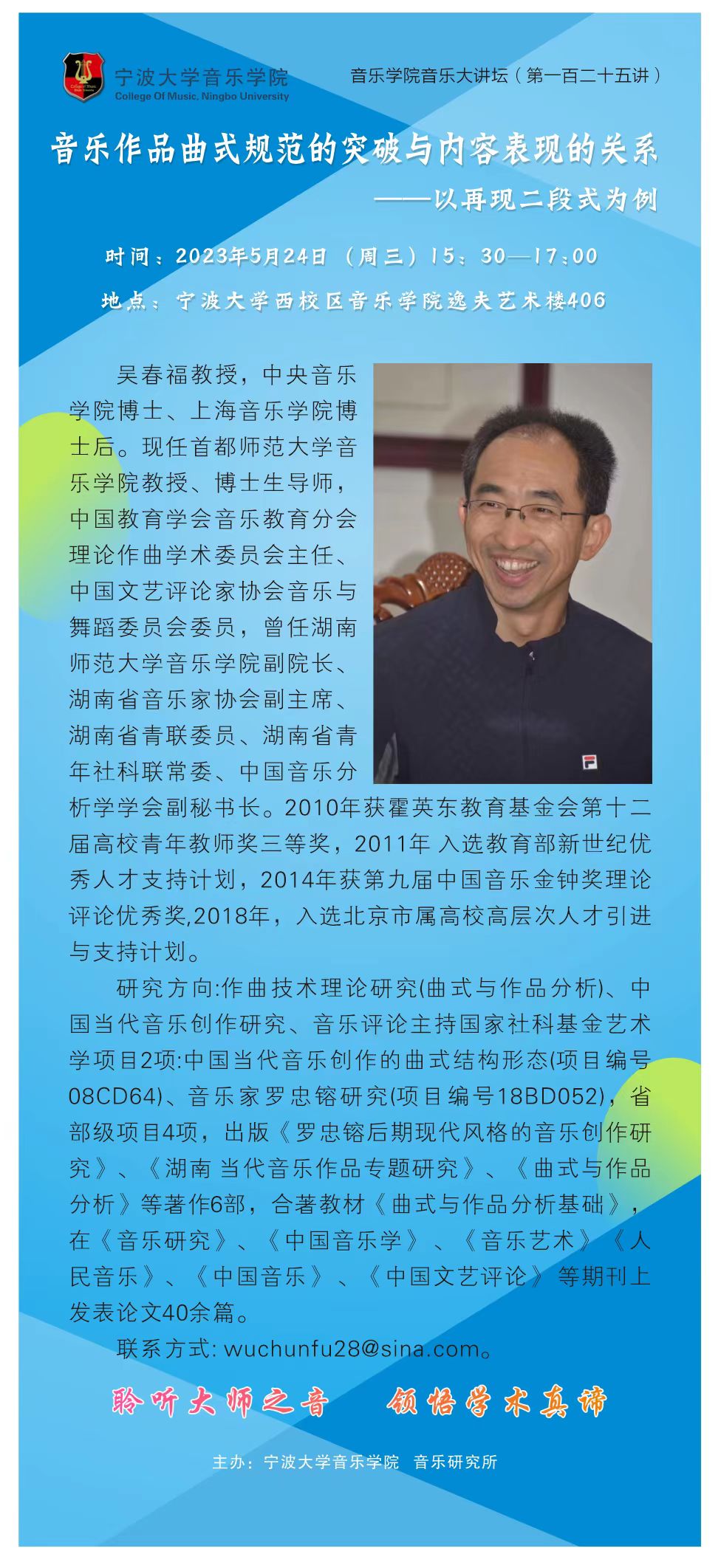 讲座题目:音乐作品曲式规范的突破与内容表现的关系——以再现二段式为例