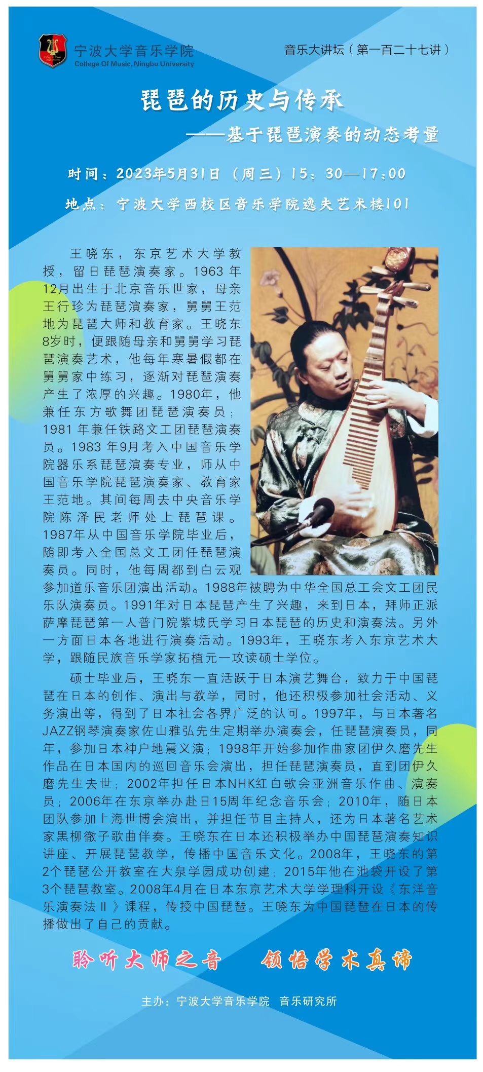 讲座题目:琵琶的历史与传承——基于琵琶演奏的动态考量