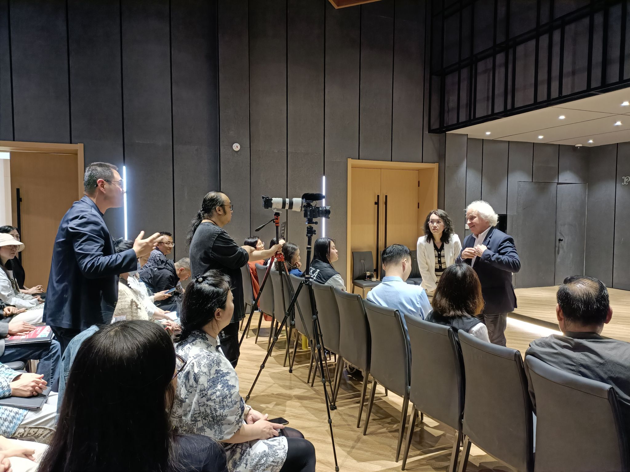 的师生向亨利教授提出了关于钢琴演奏的三个问题。对于乐谱版本的问题,亨利教授表示要参考肖邦手稿及手稿注释部分,同时要考虑当时的琴与现在的琴的区别。对于在现代钢琴上演奏肖邦作品的技巧方面,亨利教授主要强调了对渐强和重音的处理以及踏板的使用方面。