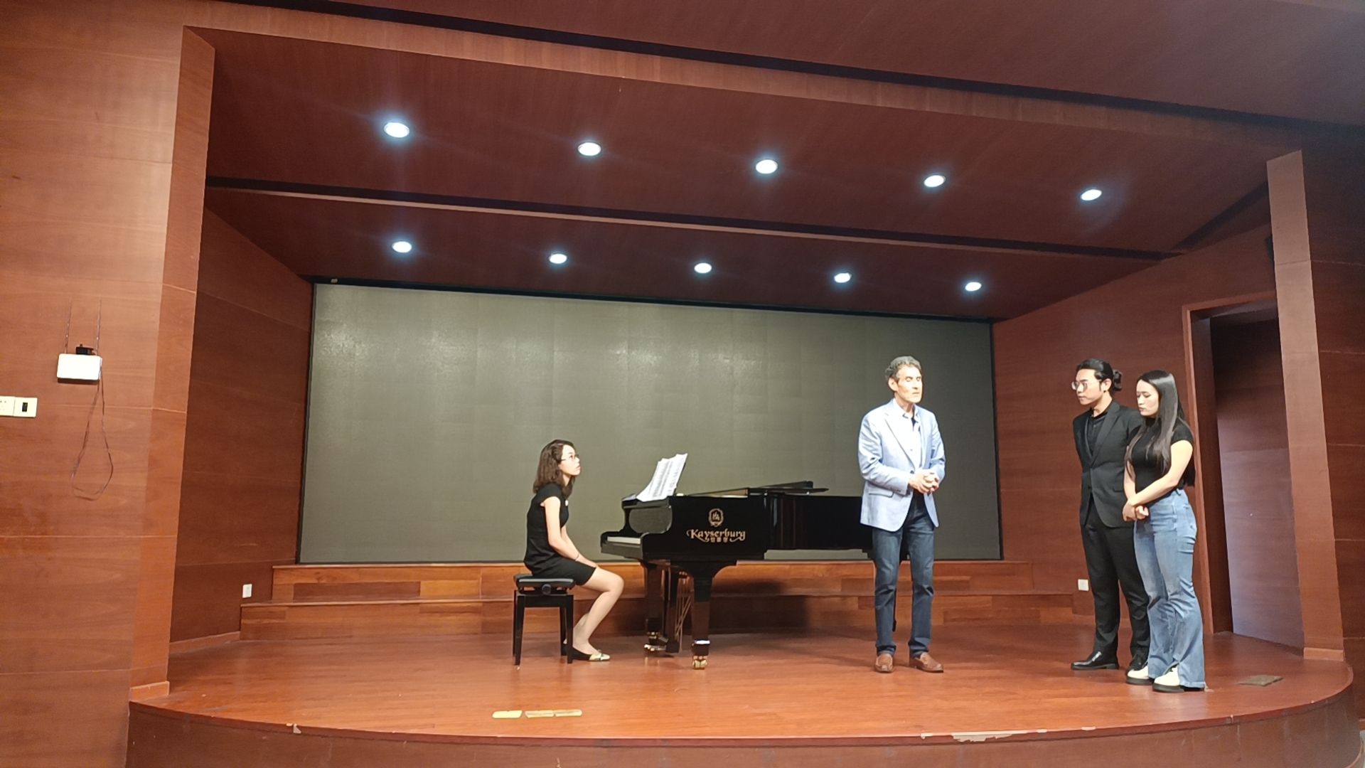 不同年级的学生参与了本次课堂,分别演唱了由亨德尔、莫扎特等作曲家创作的咏叹调,包括《唐璜》、《女人心》等歌剧中的经典唱段。沃尔什教授根据每个学生的表演提出了精要的意见和建议,主要涉及了表演礼仪、角色心理、动作神态以及歌词发音四个方面。