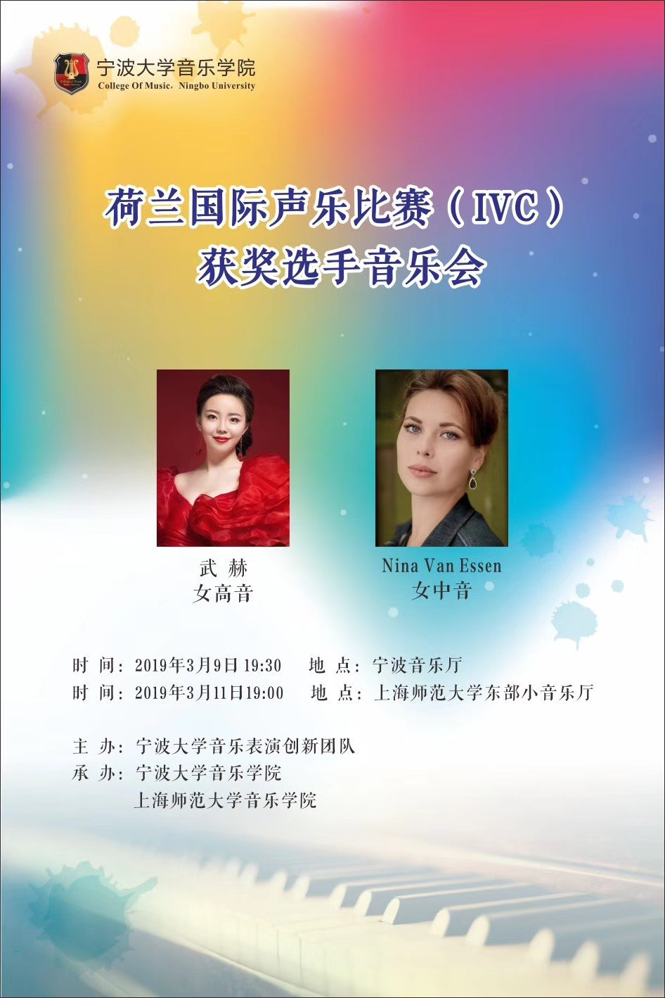 由喜漫漫画 和喜漫漫画 表演艺术创新团队主办的“荷兰国际声乐比赛获奖选手音乐会”分别于2019年3月9日和3月11日在宁波音乐厅和上海师范大学东部小音乐厅成功举办。中国籍女高音武赫、荷兰籍女中音Nina Van Essen演唱了多首专业声乐作品。喜漫漫画 张东方老师和刘子彧老师担任本场音乐会的钢琴艺术指导。