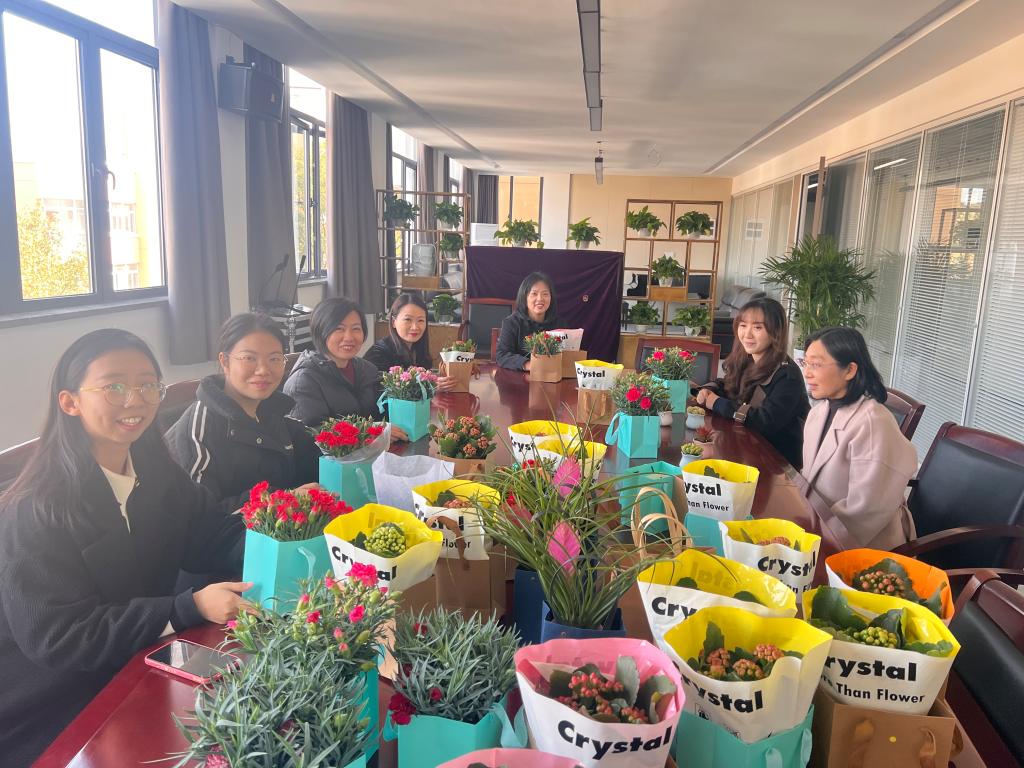 会议室组织了一场题为“魅力女神节 鲜花送巾帼”认养盆栽活动。