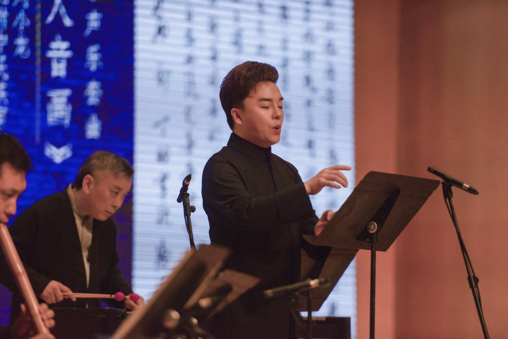 作曲系教授、博士生导师,著名作曲家高为杰先生根据肖玛老师的演唱特点精心编配谱写的室内乐声乐套曲《白石道人音画》。该部作品的词曲选自南宋大家姜白石的三曲传世佳作,分别为《杏花天影》《凄凉犯》《扬州慢》套曲的第三曲高为杰教授巧妙的创作由箜篌独奏的间奏曲《野云孤飞》,形成了一套独具中国音乐艺术魅力的室内乐声乐套曲,该套曲是本次音乐周中唯一的一套声乐作品,此次演出也是该作品的世界首演。